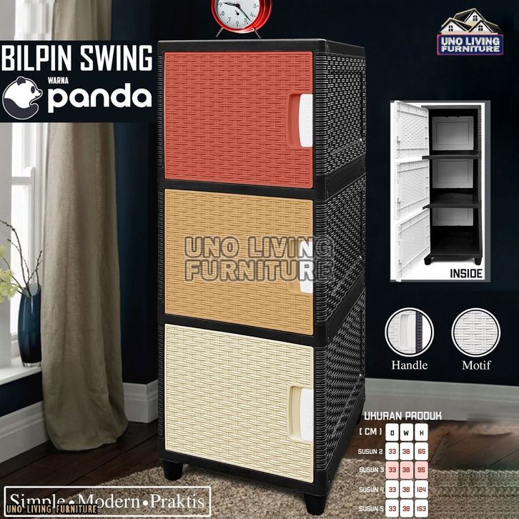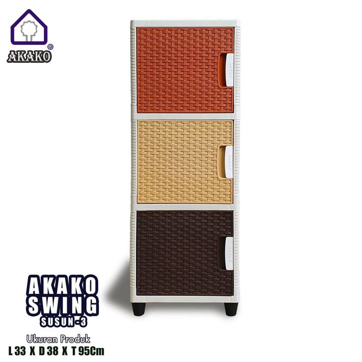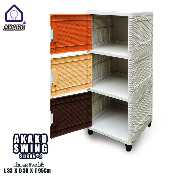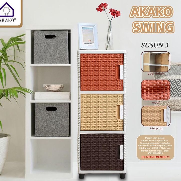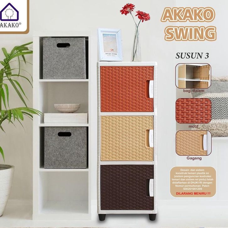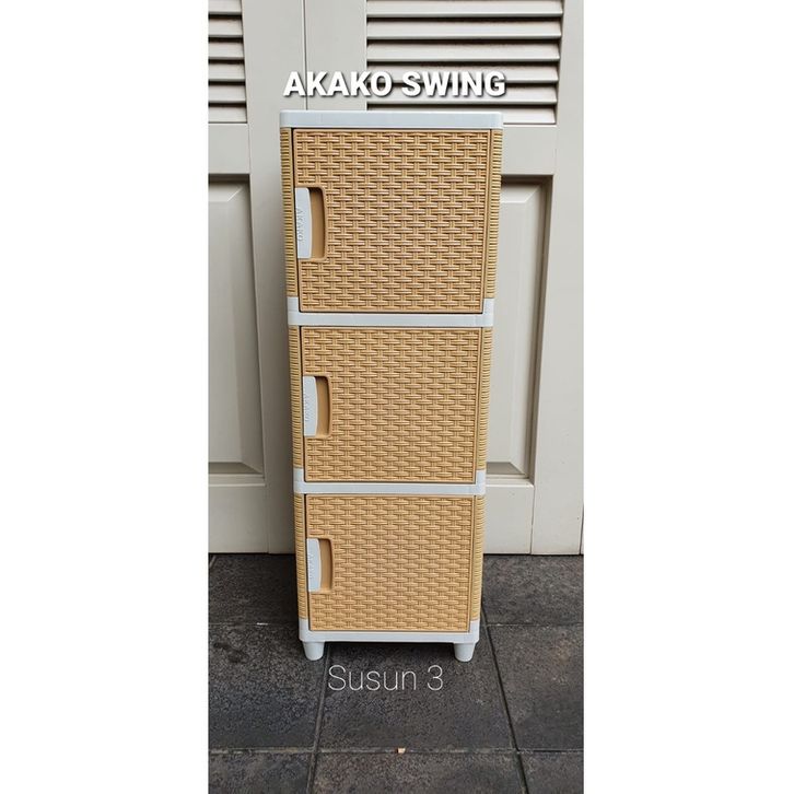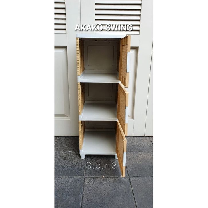 AKAKO LEMARI PAKAIAN MINIMALIS SWING 3 SUSUN LEMARI PLASTIK LEMARI BAJU LEMARI ROTAN