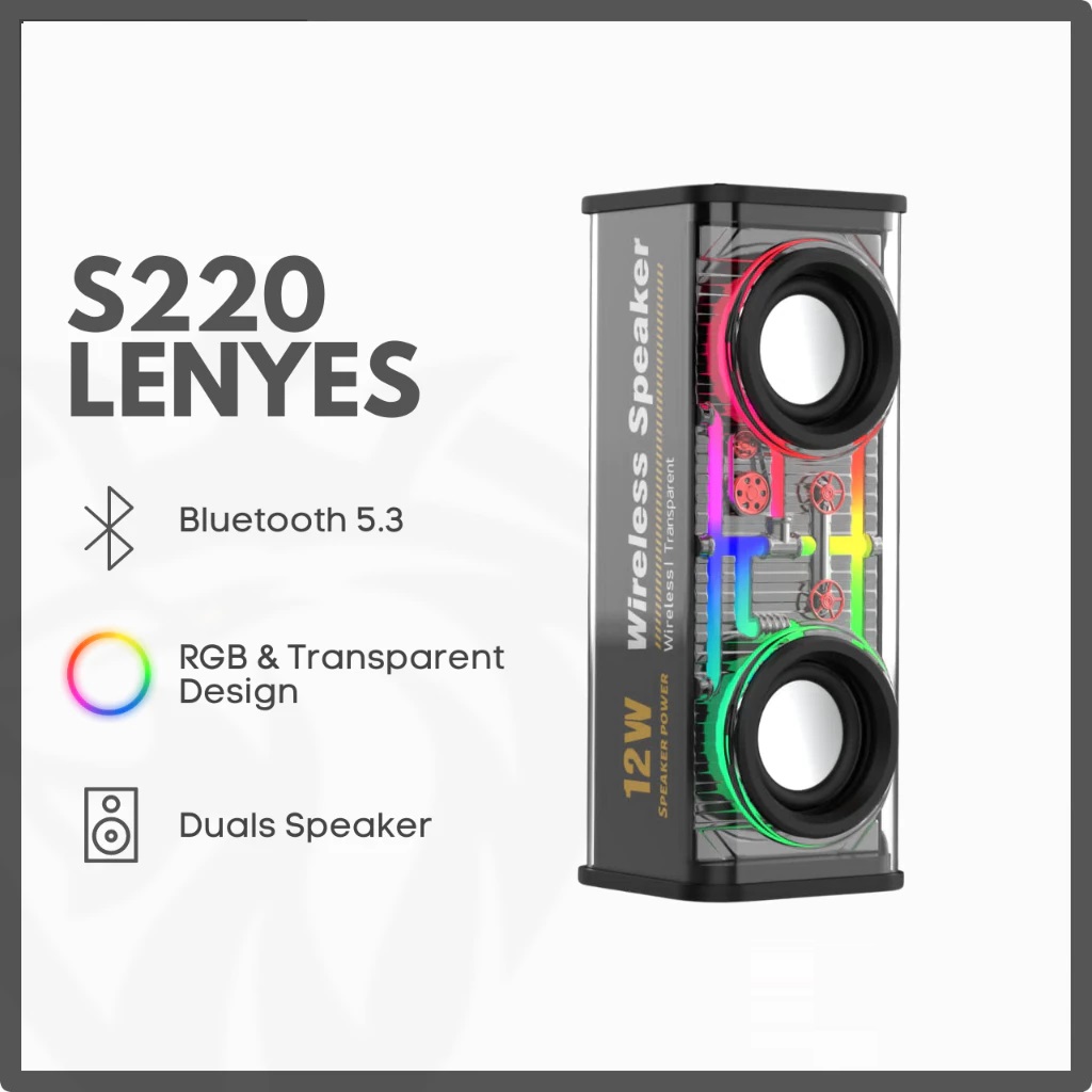 LENYES SPEAKER BLUETOOTH TRANSPARAN RGB TWS V5.3 12WATT HIFI STEREO S220