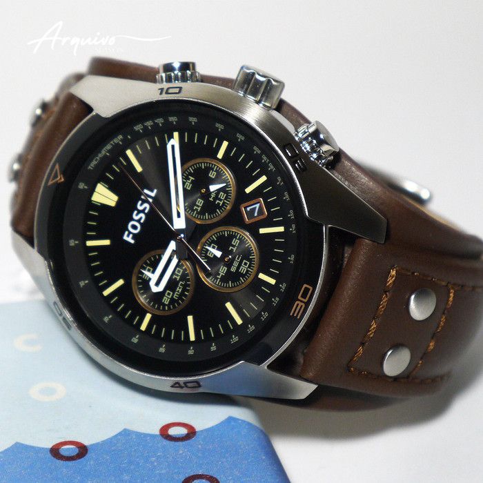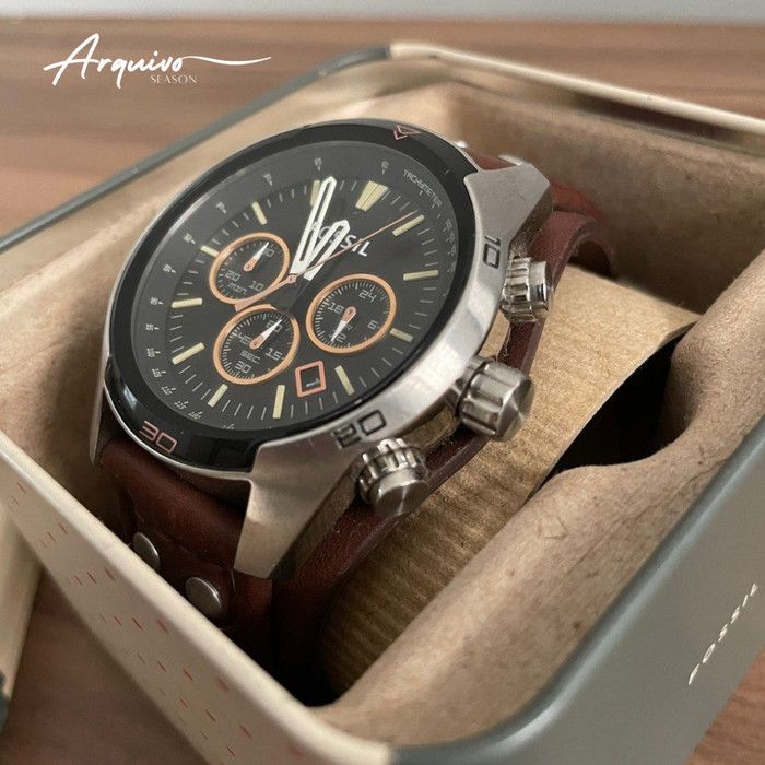 Jam Tangan Fossil Pria Coachman Chronograph Kulit Brown Dial Black Sporty Casual Original CH2891