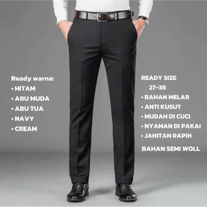 Celana Formal Pria Slim fit Bahan wol street