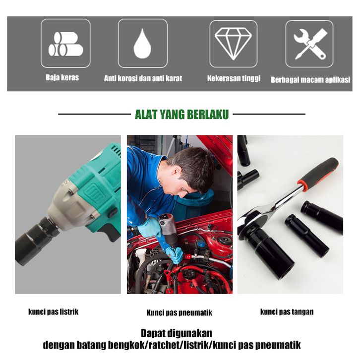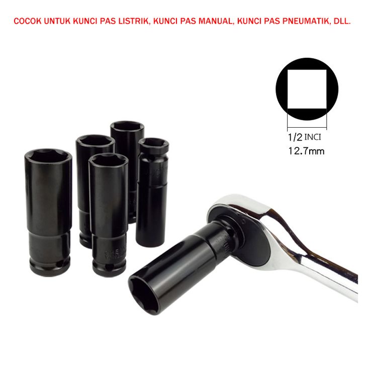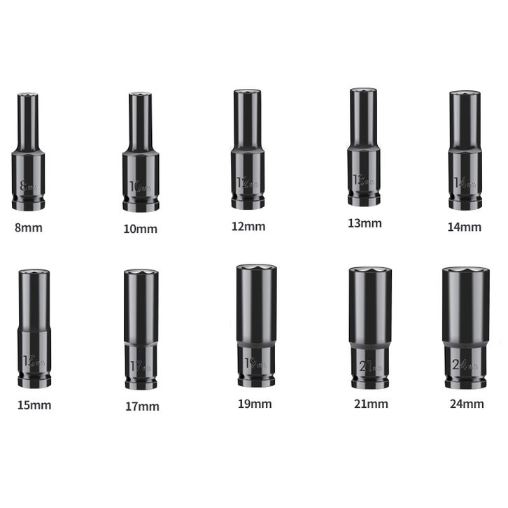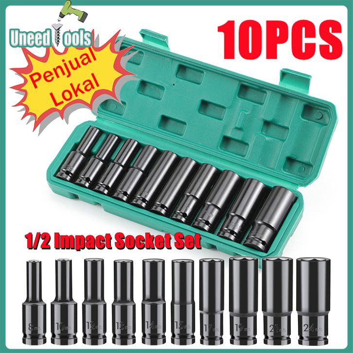 UneedTools 10Pcs Mata Impact Socket 1/2 Inci 8-24mm Sock Impact Wrench/Kunci Sok Impact Cocok Untuk Banyak Alat