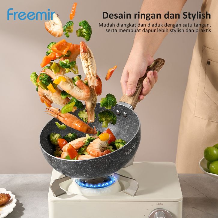 freemir Panci 20 CM Wajan Panci Serbaguna Single Bottom Panci Warna Hitam Anti Lengket Wajan Teflon Tumis Penggorengan