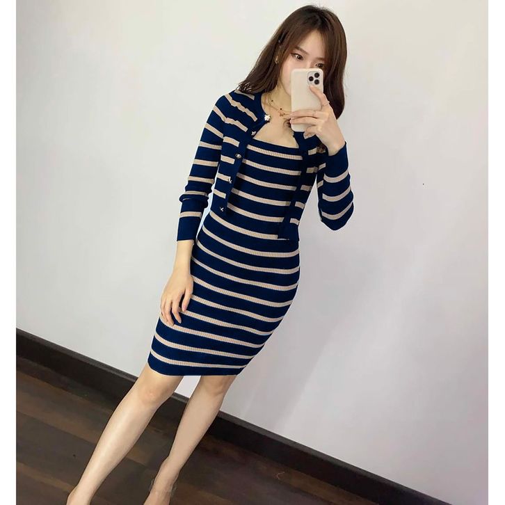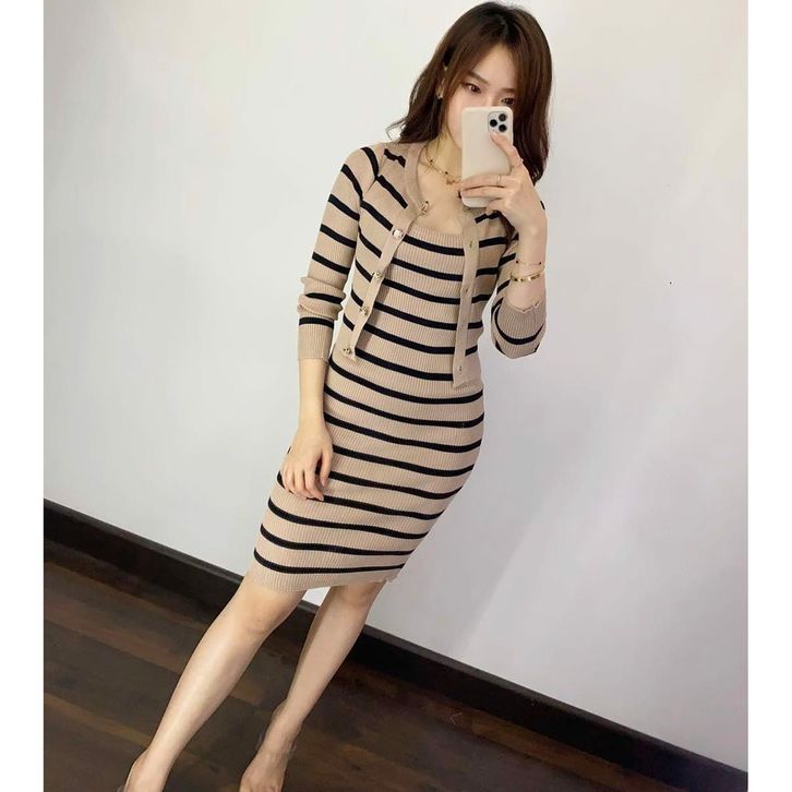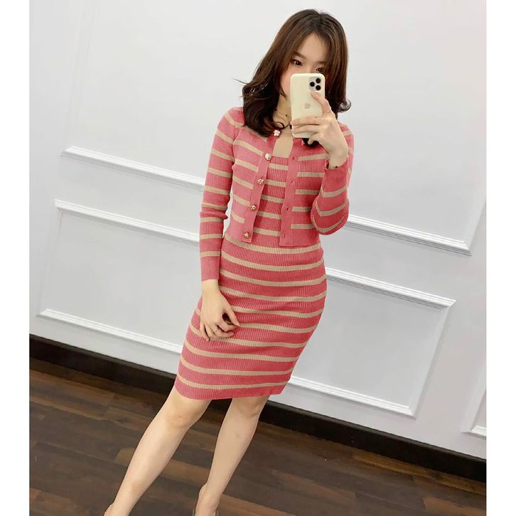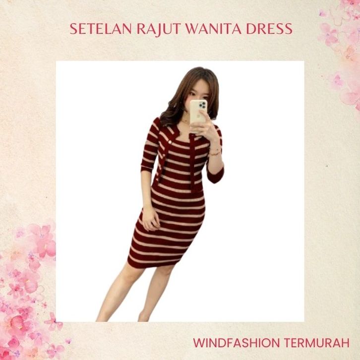 SETELAN RAJUT WANITA DRESS DAN OUTER OUTWEAR CARDI MOTIF 2 WARNA WSE390 SET 2IN1 RAJUTPOCKET