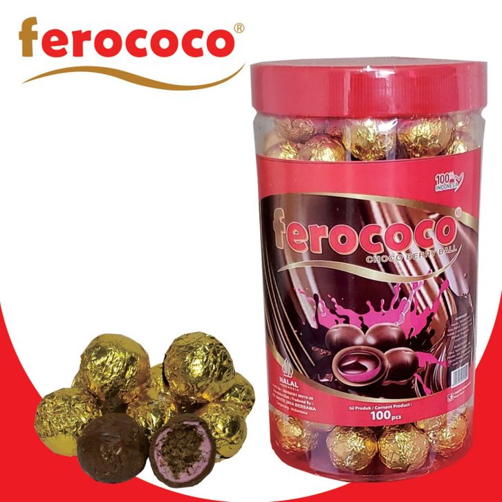 FEROCOCO CRUNCHY CHOCO BALL COKELAT 40PCS CEMILAN MANIS LEBARAN TOPLES