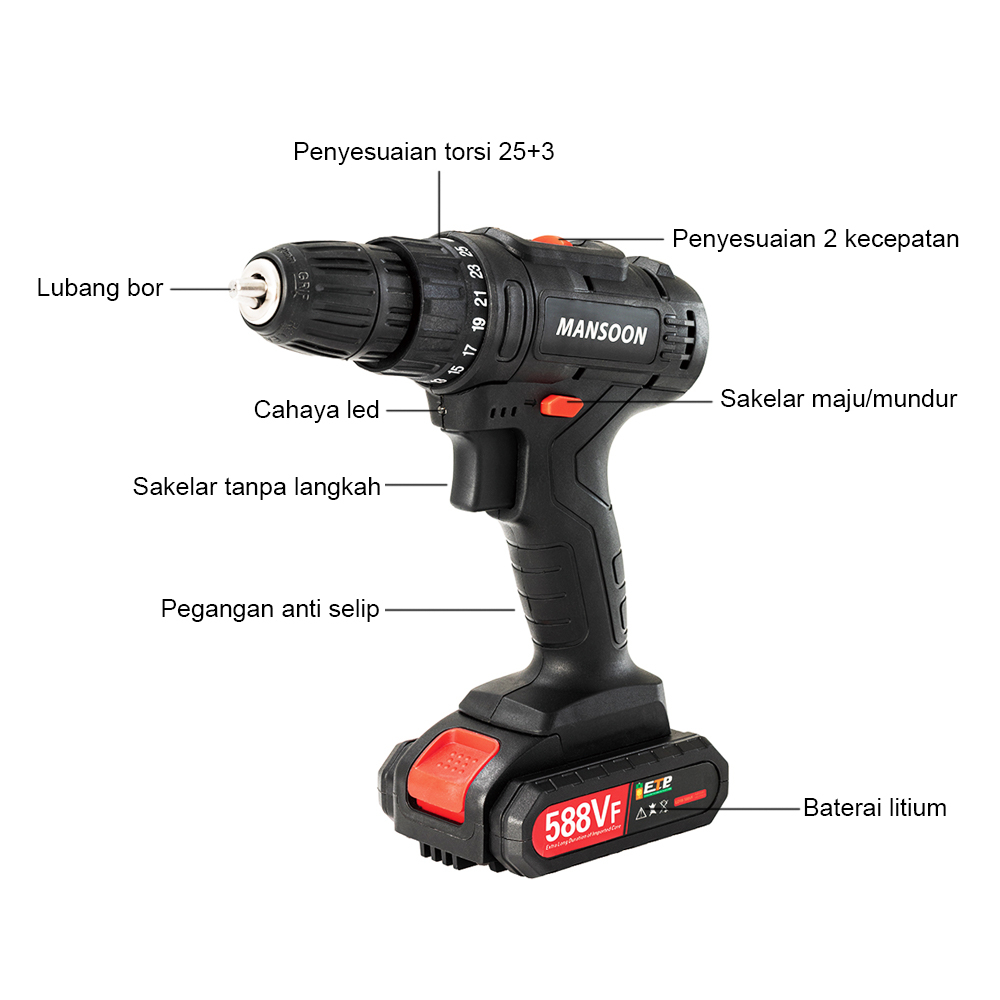 Kapal Cepat⚡Mesin Cordless Screwdriver Multifunction Electric Screwdriver Bor Cordless Drill Obeng Listrik Mesin Obeng B
