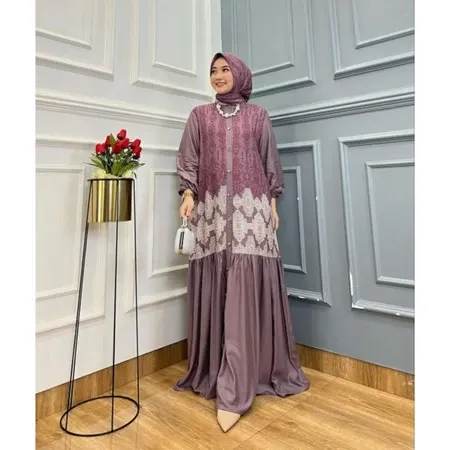 Gamis set hijab rayon diamond ori kombinasi - Gamis set hijab - Gamis rayon premium - Gamis Kekinian