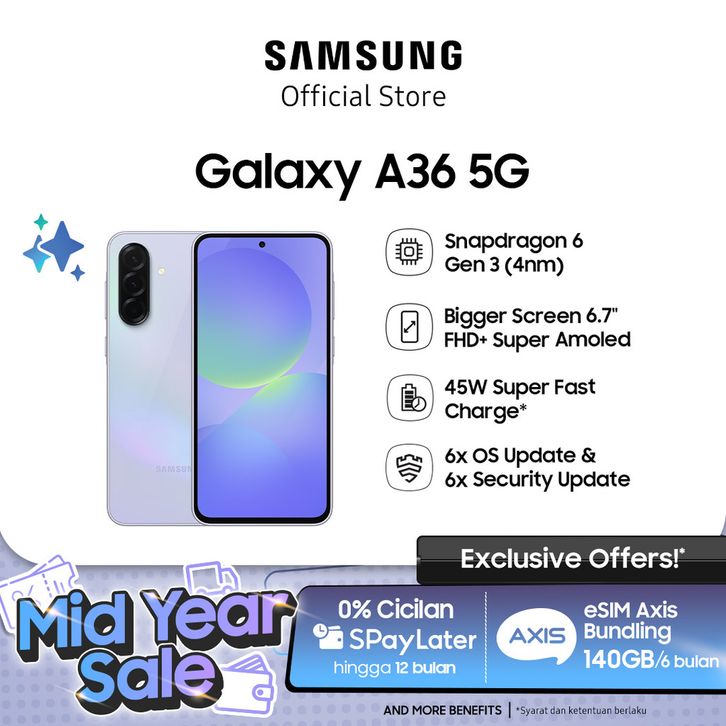 SAMSUNG GALAXY A36 5G 12/256GB / HP SAMSUNG TERBARU 2025 / GARANSI RESMI SAMSUNG - SMARTPHONE SAMSUNG HANDPHONE TEMURAH