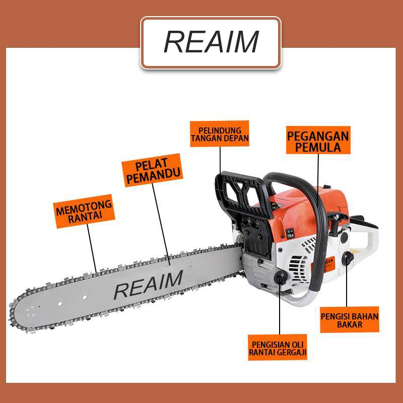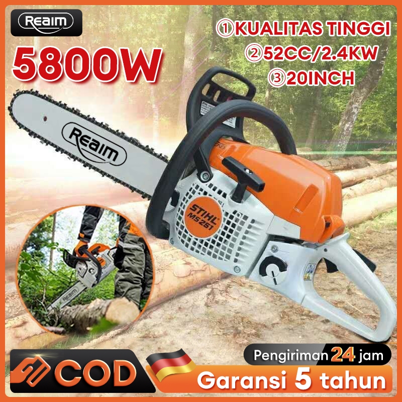 Reaim Chainsaw 20 Inch Kayu Gergaji Listrik 52CC 2/4 Tak Handheld Chain Saw Pemoton Mesin
