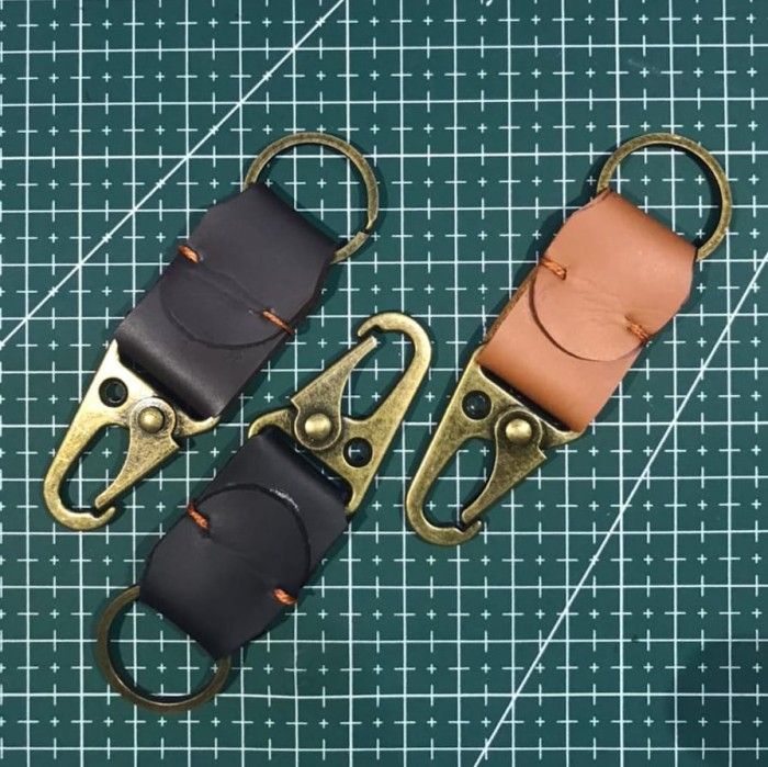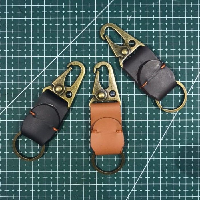 Gantungan Kunci Kulit Sintetis Jahit Premium - BROWN