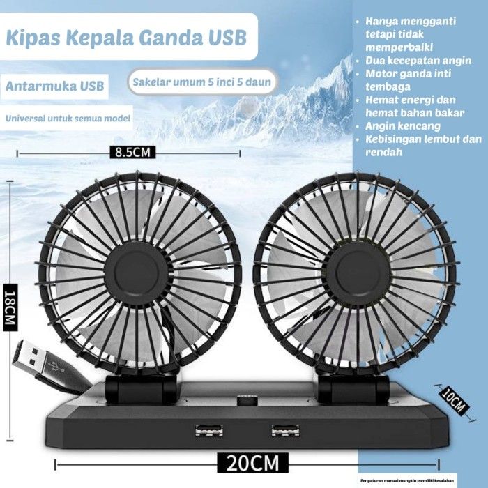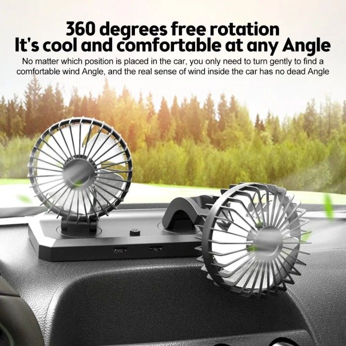 Kipas Mobil Double Fan Kipas Mobil Power USB - 100622