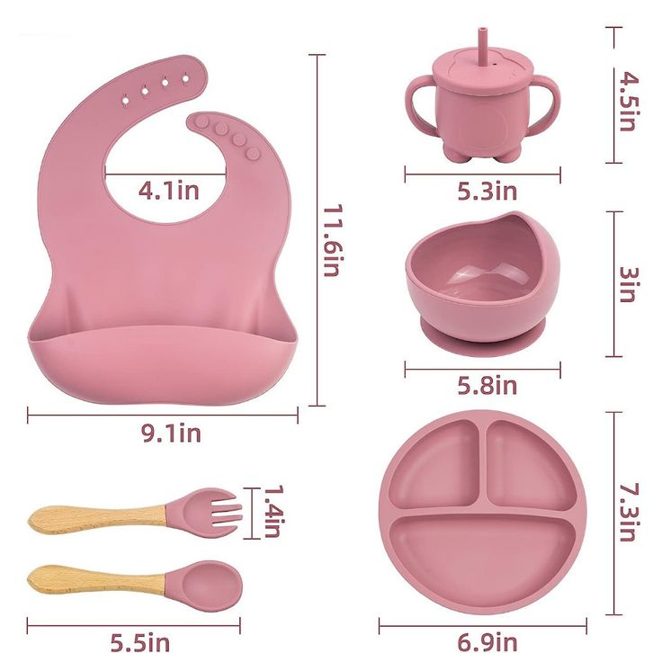 Set Peralatan Makan Bayi 6pcs – Alat Makan Silikon Anak Tahan Suhu, Aman & Praktis