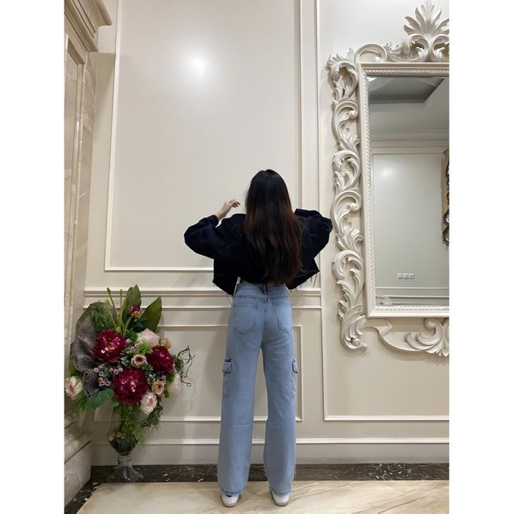 CELANA CARGO WANITA PANJANG JEANS LOOSE HIGHWAIST