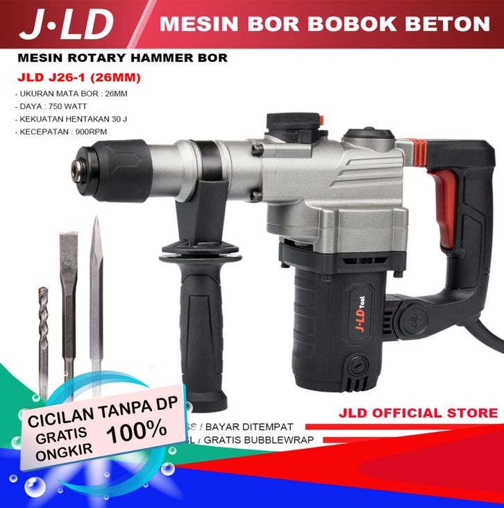 TANPA DP - JLD MESIN BOR BOBOK BOR TEMBOK BETON J26-1 - 750W MESIN ROTARY HAMMER BOR BY JLD TOOLS