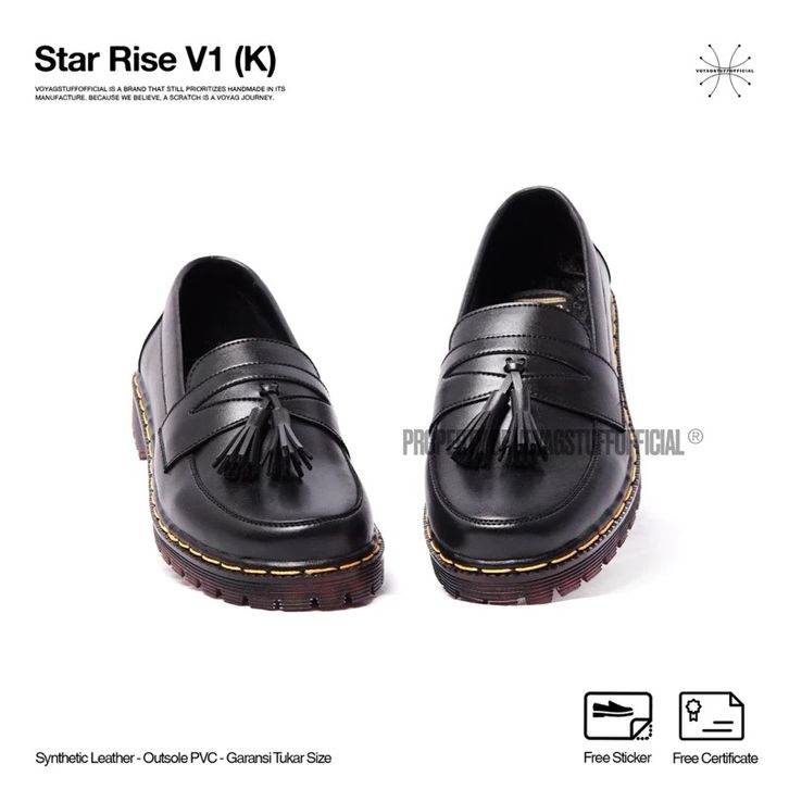 Voyagstuffofficial - Star Rise V1 Sepatu Slip On Pria Penny Loafers Boots Kulit Black
