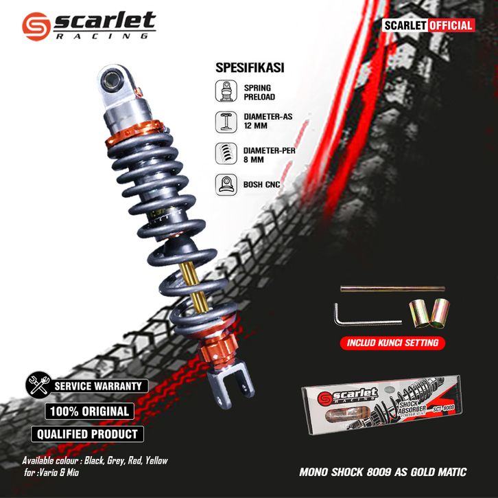 Scarlet Racing - Shock Shockbreaker Absorber 8009 AS Gold (O+U) Uk 280 mm