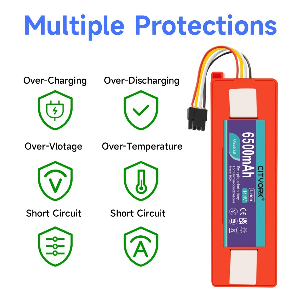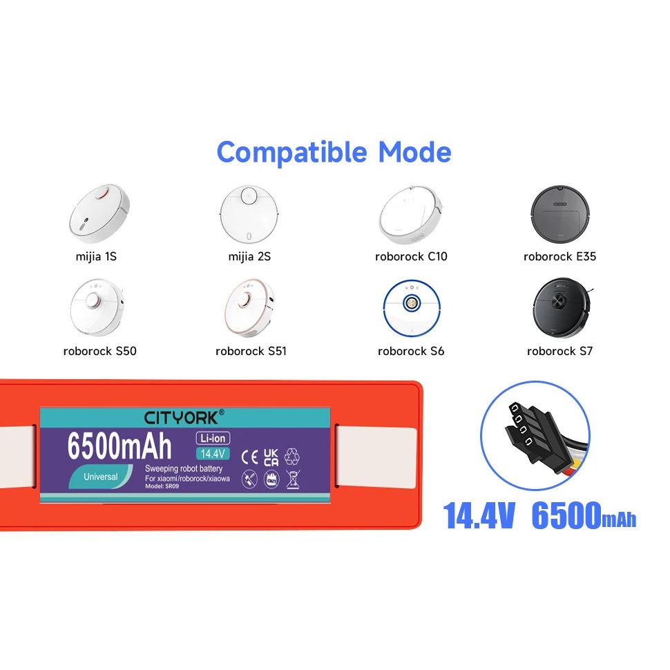 Robotic Vacuum Cleaner Replacement Baterai for Xiaomi Mijia Roborock 1S S5 S6 S50 S51 S55 E20 E25 E35 C10 6500mAh