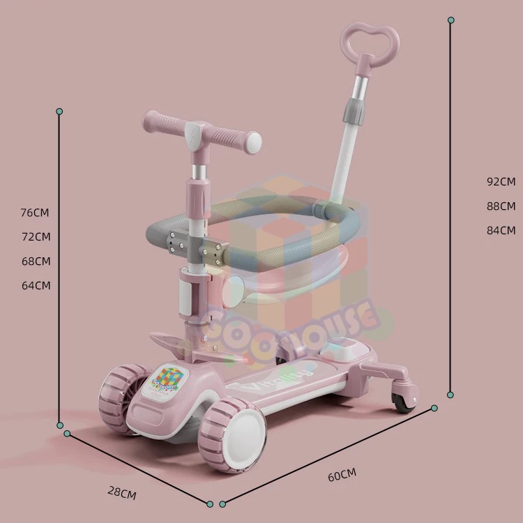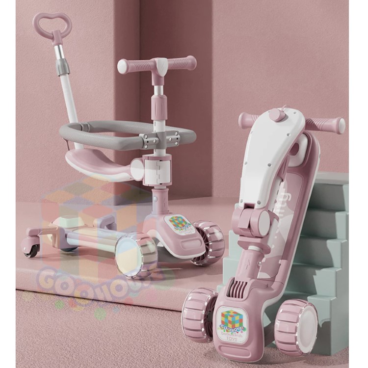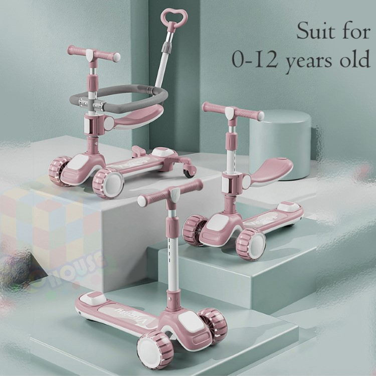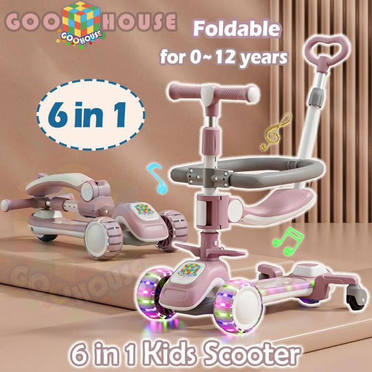 6 in 1 Skuter Anak Kids Scooter Skuter Lipat 0-12 tahun Skuter Musik Bangku Lampu skuter anak roda 3
