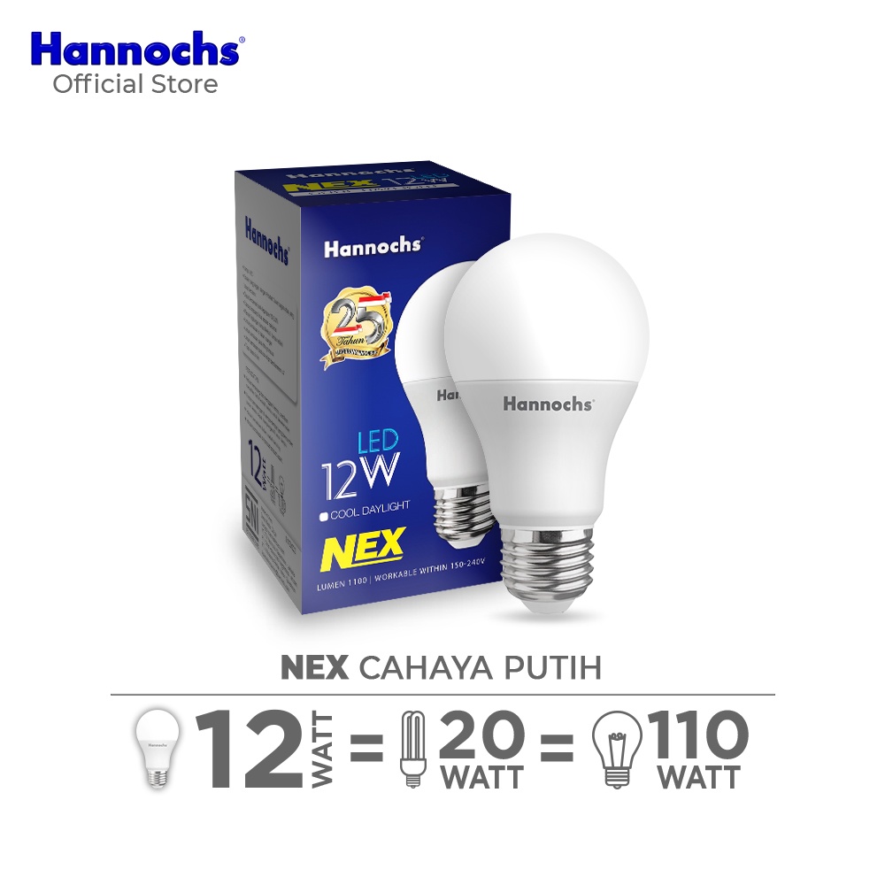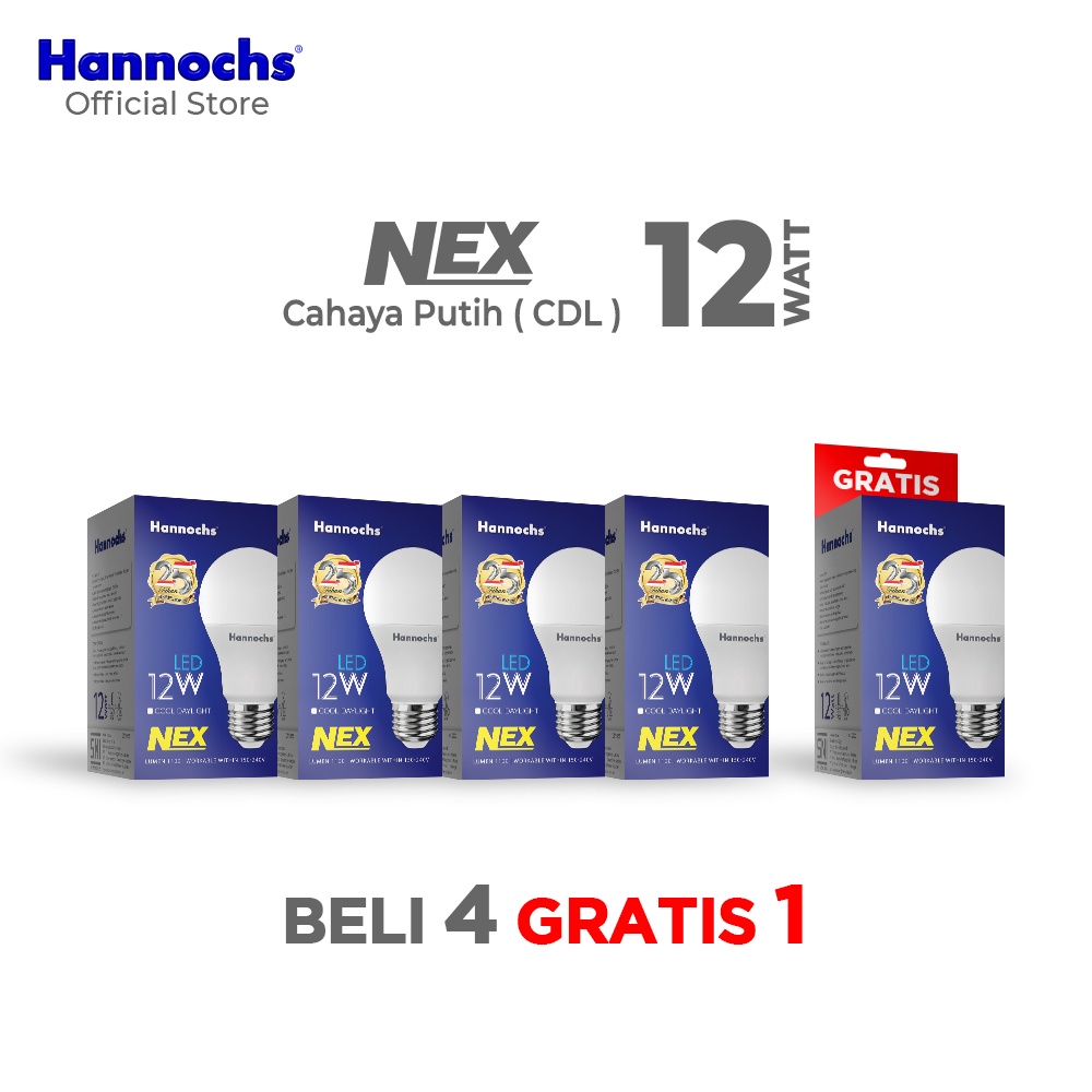 Hannochs Lampu Bohlam LED NEX 12W Cahaya Putih ( BELI 4 GRATIS 1 ) READY STOCK