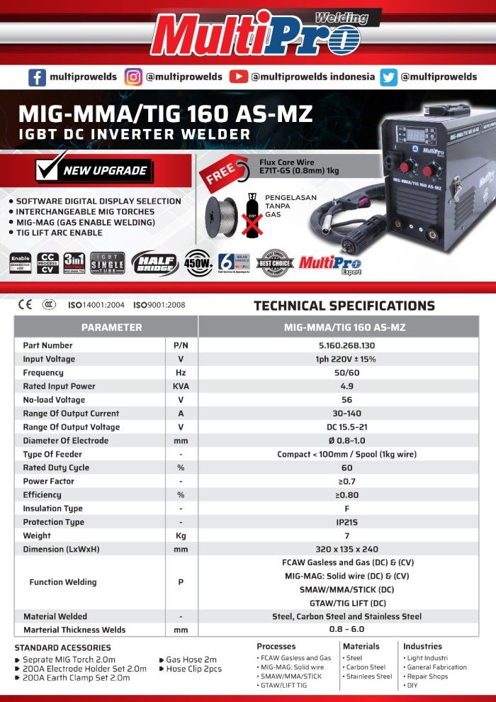 Mesin Las MESIN LAS MULTIPRO MIG MMA TIG 160 A LAS CO TANPA GAS MIGI CO2 IGBT