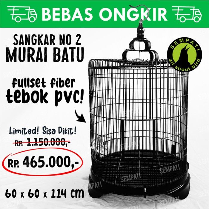 Sangkar Burung SANGKAR MURAI KANDANG MURAI BATU SANGKAR BURUNG FIBER IMPORT FULSET SM - Hitam