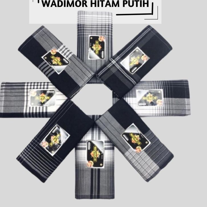 Sarung Wadimor Kain Tenun Motif / Pria Dewasa Laki / Polos Garis Kotak Hitam Putih / Fashion Busana Muslim