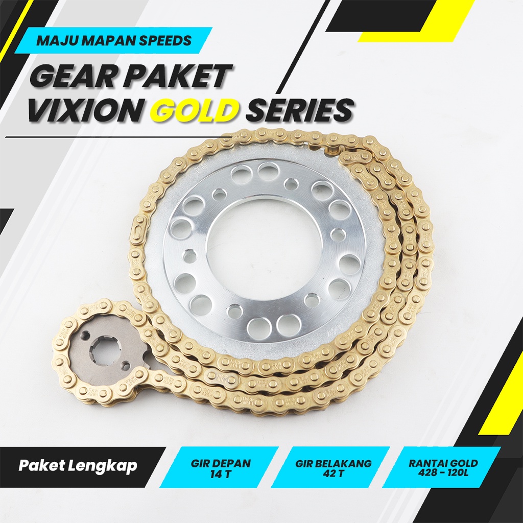 Sale! Gear Set Vixion 14T/42T 14T/43T 14T/40T 428H-120L Type SSS KC Premier (GOLD SERIES)/girset