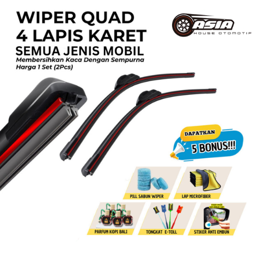 Wiper Mobil AVANZA SIGRA CALYA AGYA XEINA AYLA 4 Lapis Karet Universal 1 Set Kiri dan Kanan Paket 5 Bonus Item