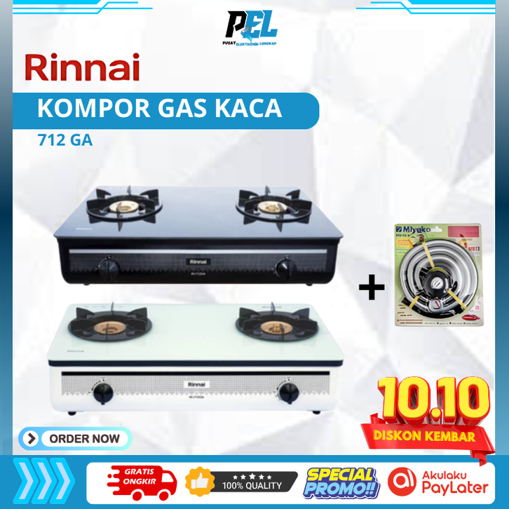 Kompor Gas RINNAI 2 Tungku Terbaru 2024 7120 Gab Stenlis + Selang Regulator Best Seller - Official Store.