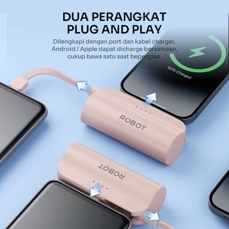 POWERBANK MINI 4500MAH ORT TYPE-C LIGHTNING TRAVEL SIZE RP-051L / RP-051C ROBOT ORIGINAL BEST SELLER