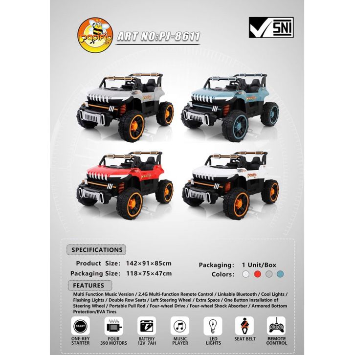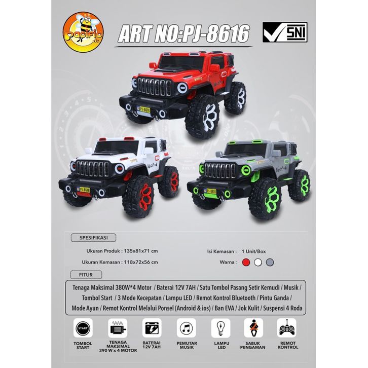 Mobil Aki Anak Jumbo Karet Pacific Jeep Hummer PJ-8611 Manual Remot Murah
