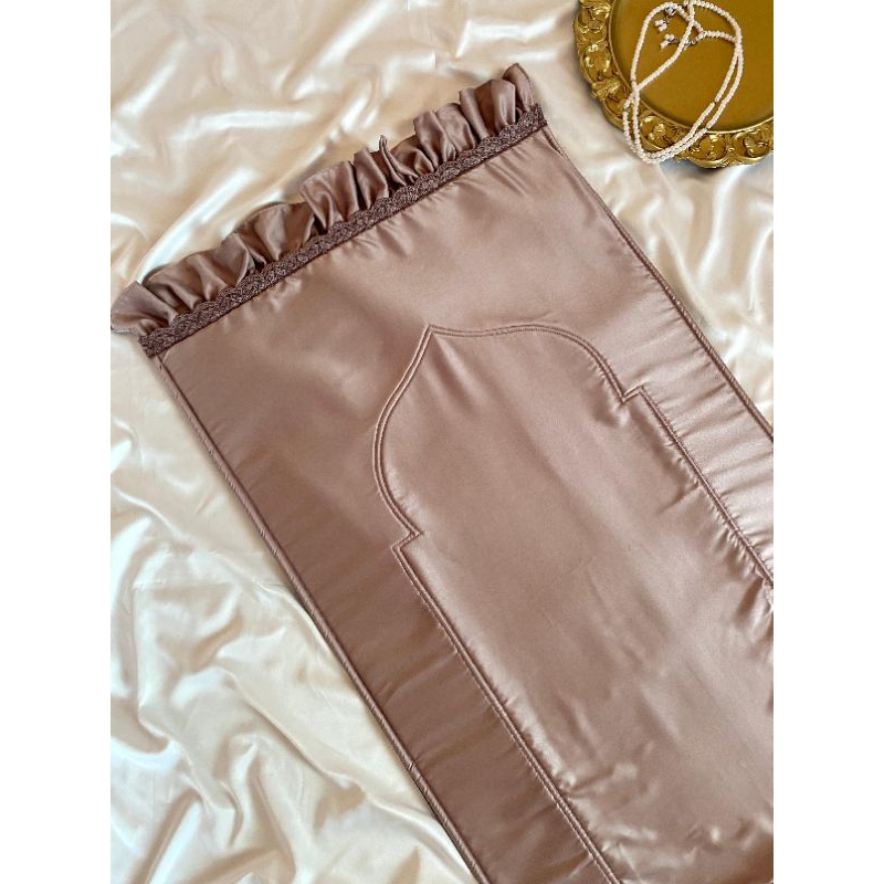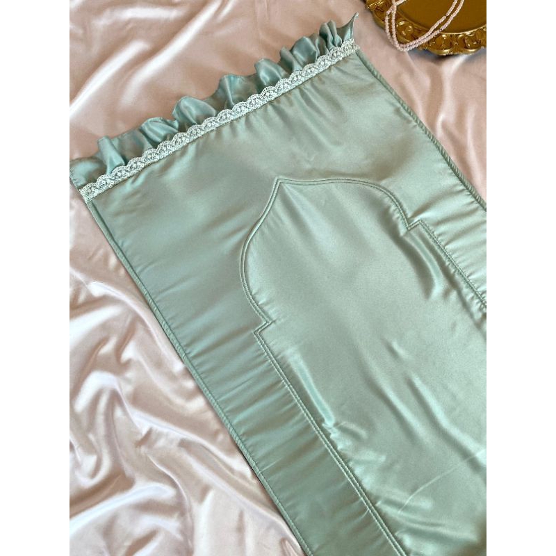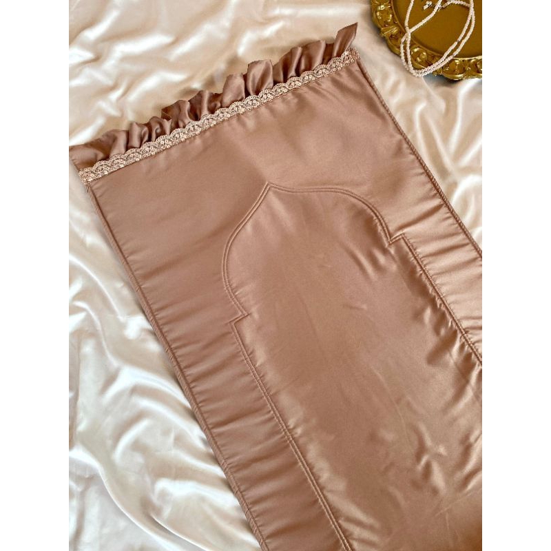 [Harga Spesial] Sajadah Polos Ruffle Lace Free Tasbih Mutiara | Sajadah Renda Wedding Kado