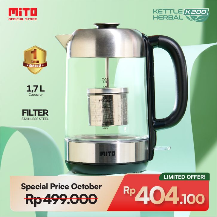 MITO Electric Kettle Herbal K200 1.7L | Teko Listrik Gelas Transparan Pemanas Air Transparent Glass