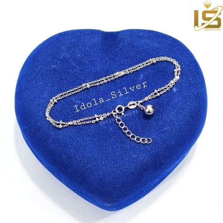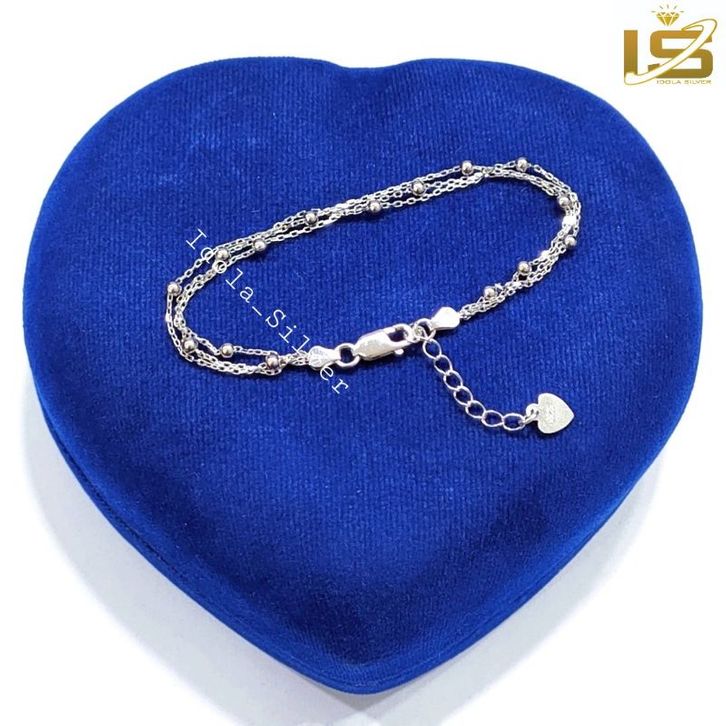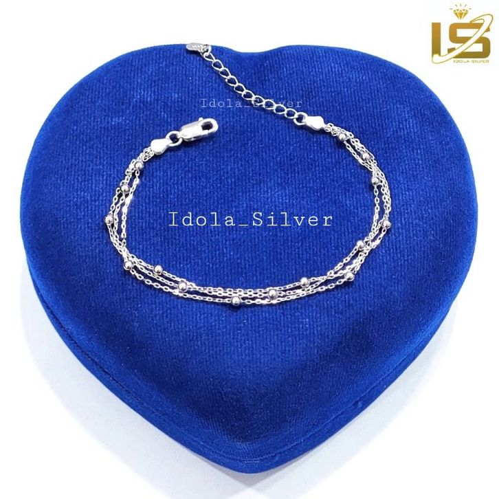 Gelang Perak Asli Silver 925 Lapis Ems Putih Model Rantai 3 Layer Bola - Perhiasan Perak Wanita