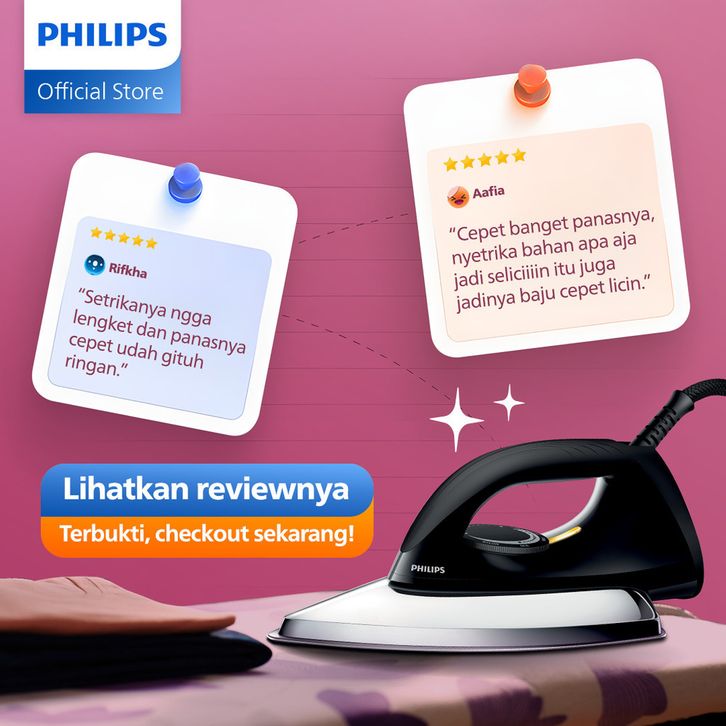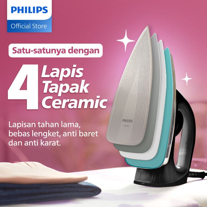 Philips Official Store - Setrika Philip Original Gosokan Baju kering HD1173/80 Ceramic 4 Lapis Anti-Lengket Terbaik