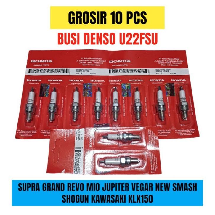 TERLARIS 10 PCS BUSI DENSO U22FSU GRAND SUPRA JUPITER MIO REVO SMASH SHOGUN KAWASAKI HONDA NEW