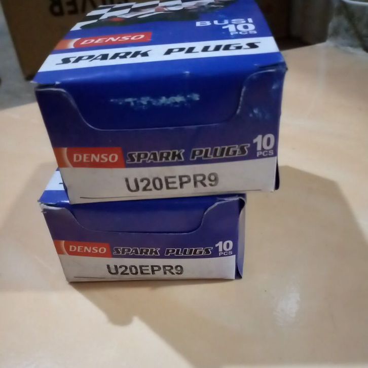 TERLARIS Busi Denso U20EPR9 1 kotak isi 10 Pcs untuk motor SupraX125, Beat , Scoopy, Vario,Revo,