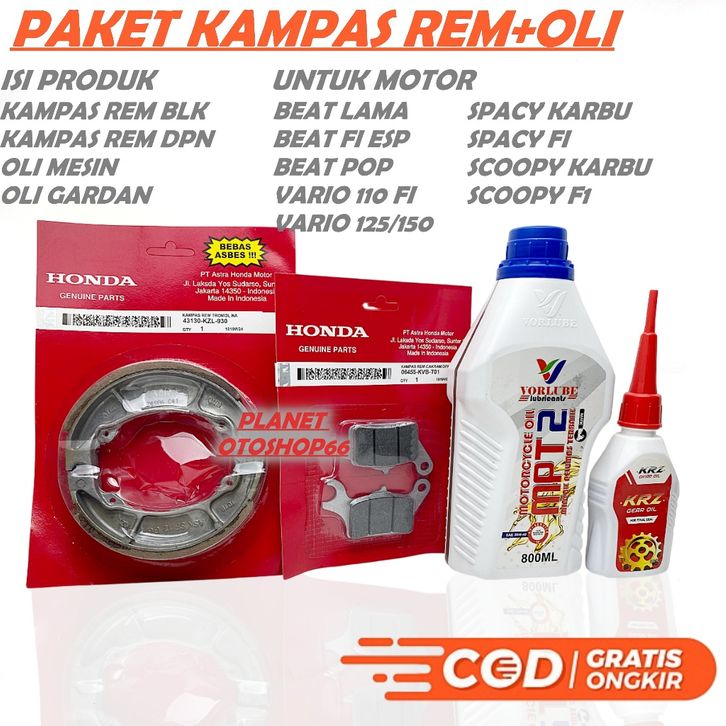 TERMURAH PAKETAN KAMPAS REM DETPAN BELAKANG OLI MESIN OIL GARDAN BEAT FI BEAT POP ESP SCOOPY SPACY VARIO 125 / 150 PAKET