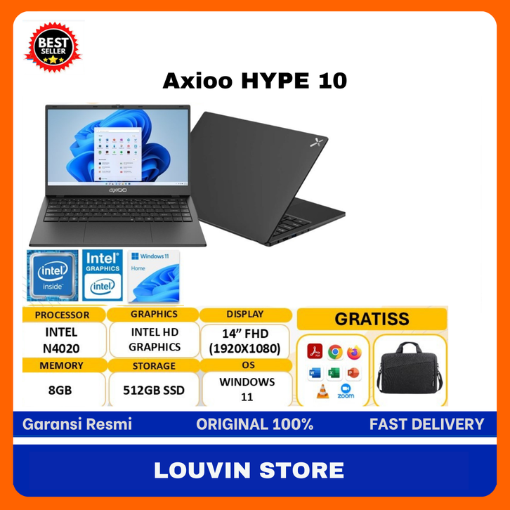 FREE MOUSE Axioo hype 10 N4020 intel uhd 8gb 512gb windows 11pro 14.0Inch