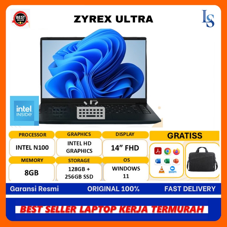 FREE MOUSE Zyrex Ultra Intel N100 8GB 128GB 256GB 14" FHD Metal Backlit Keyboard