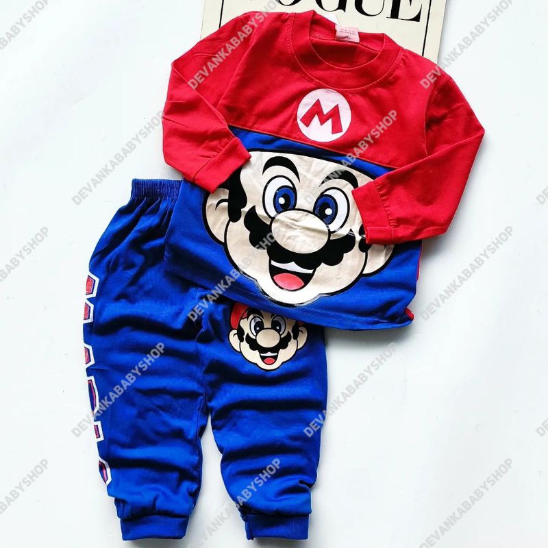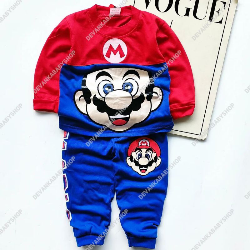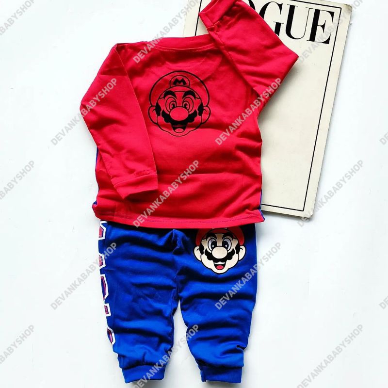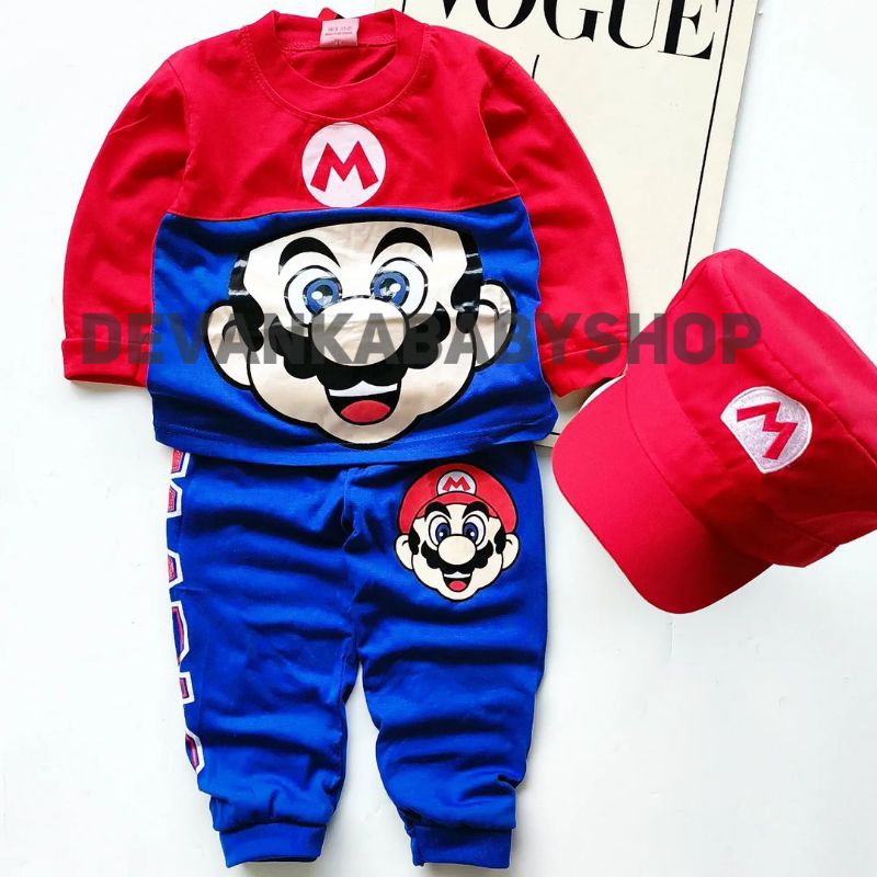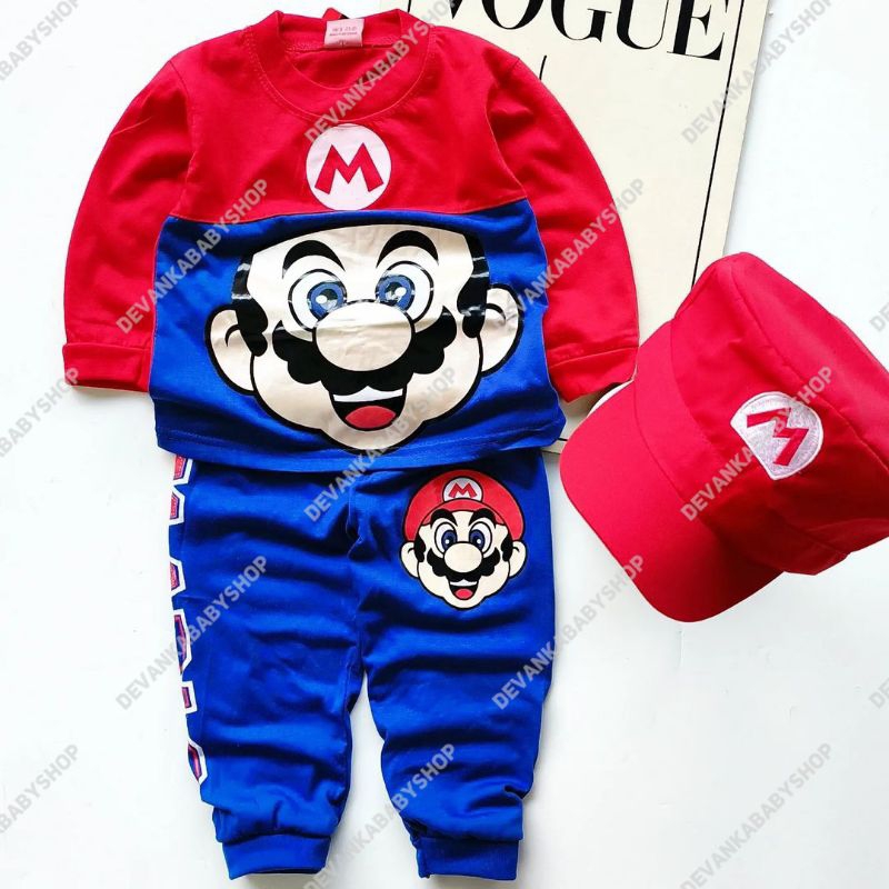 BAJU MARIOBROSS ANAK LENGAN PANJANG SETELAN ANAK LAKI LAKI ADA TOPI UNTUK UMUR 1-10 TAHUN