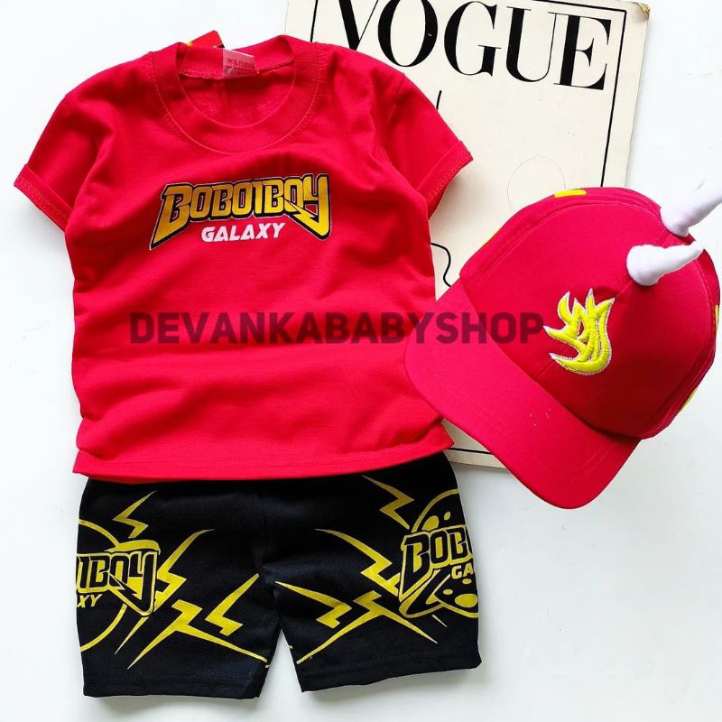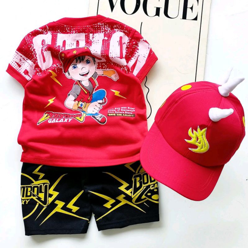 BAJU SETELAN BOBOIBOY API ANAK ADA TOPI UNTUK UMUR 1-10 TAHUN