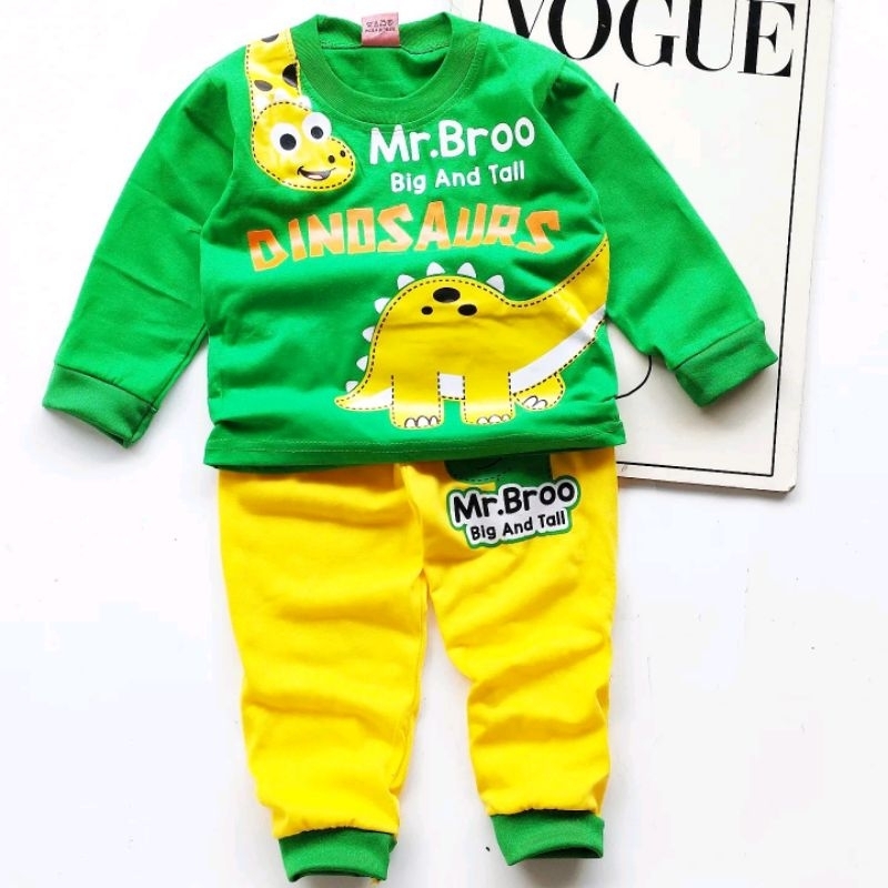 PIYAMA ANAK COWOK CEWEK MOTIF DINO ADA TOPI UNTUK UMUR 1-10TAHUN
