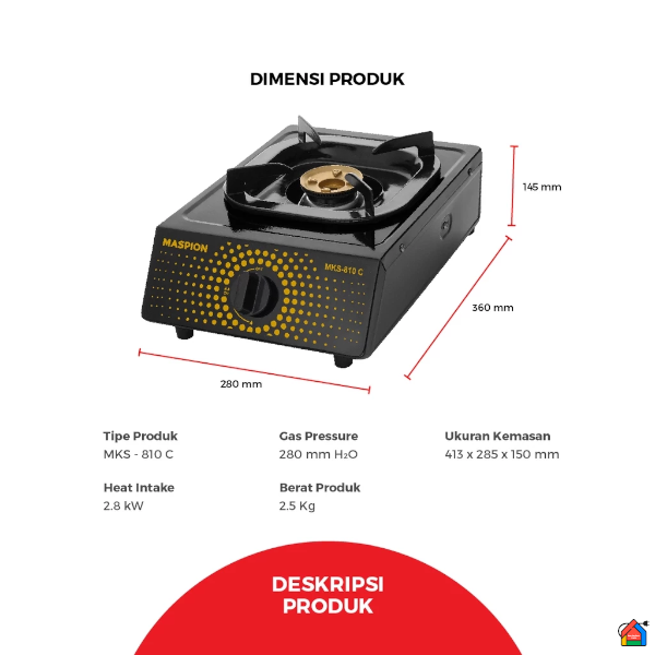 Maspion Kompor 1 Tungku MKS 810 C / Maspion Kompor Gas Coating MKS810C