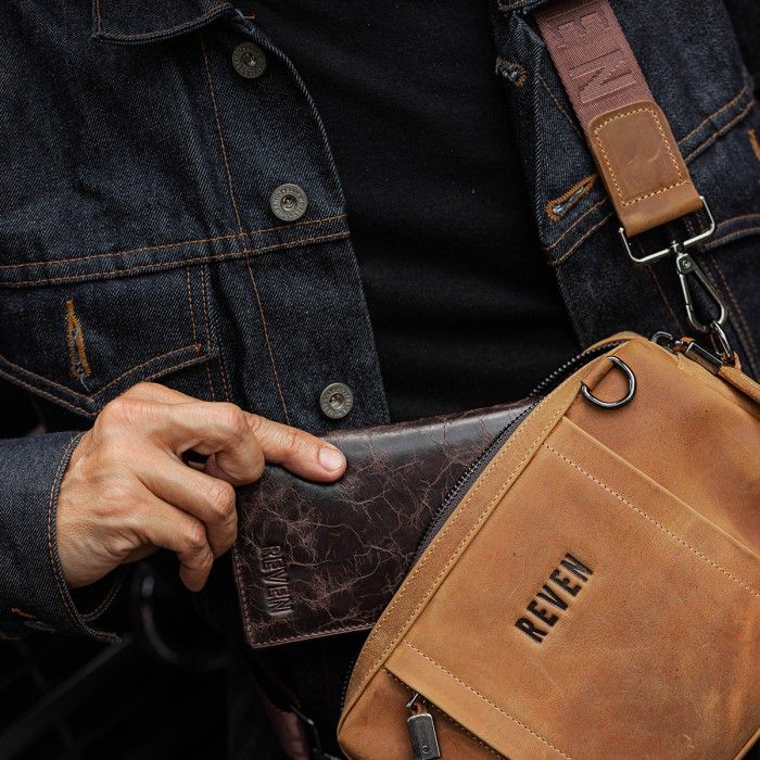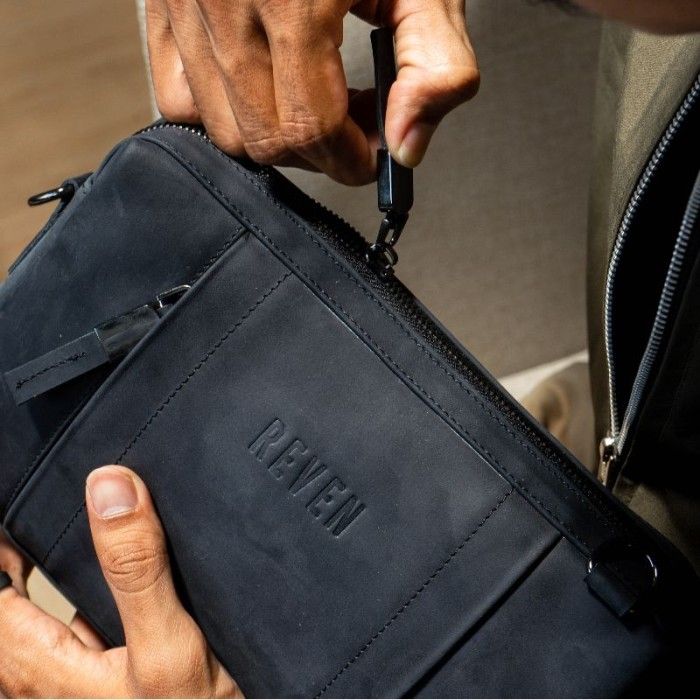 Tas Selempang Pria Kulit Asli Reven Oslo Multi Bag Model Terbaru - Hitam