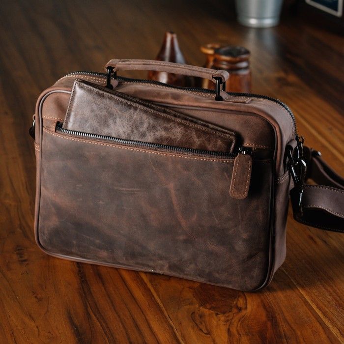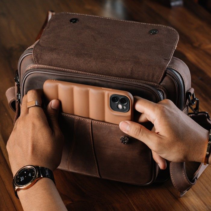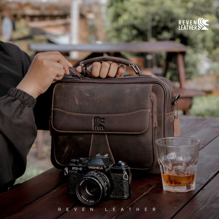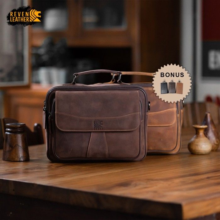 Tas Selempang Pria Sling Bag Pria Reven Bima Tas Kulit Pria Asli - Cokelat