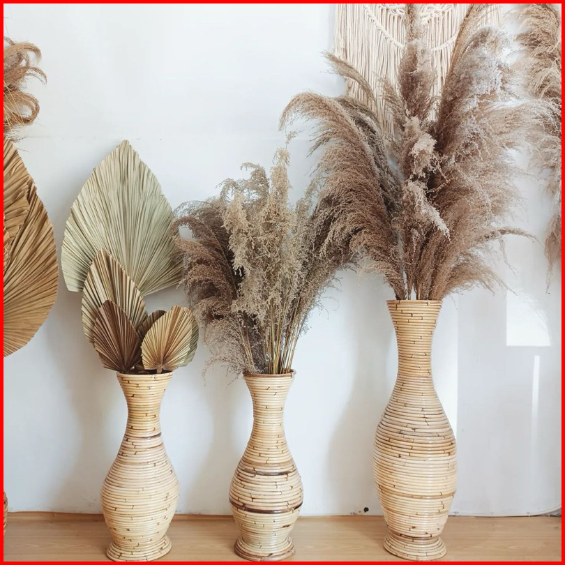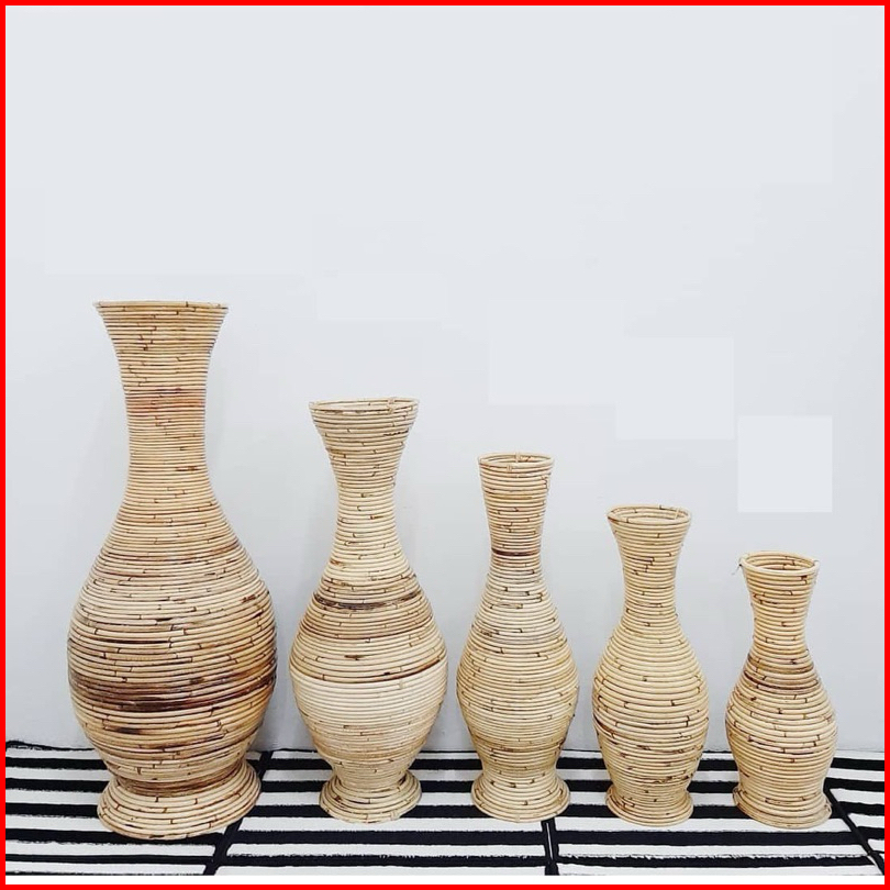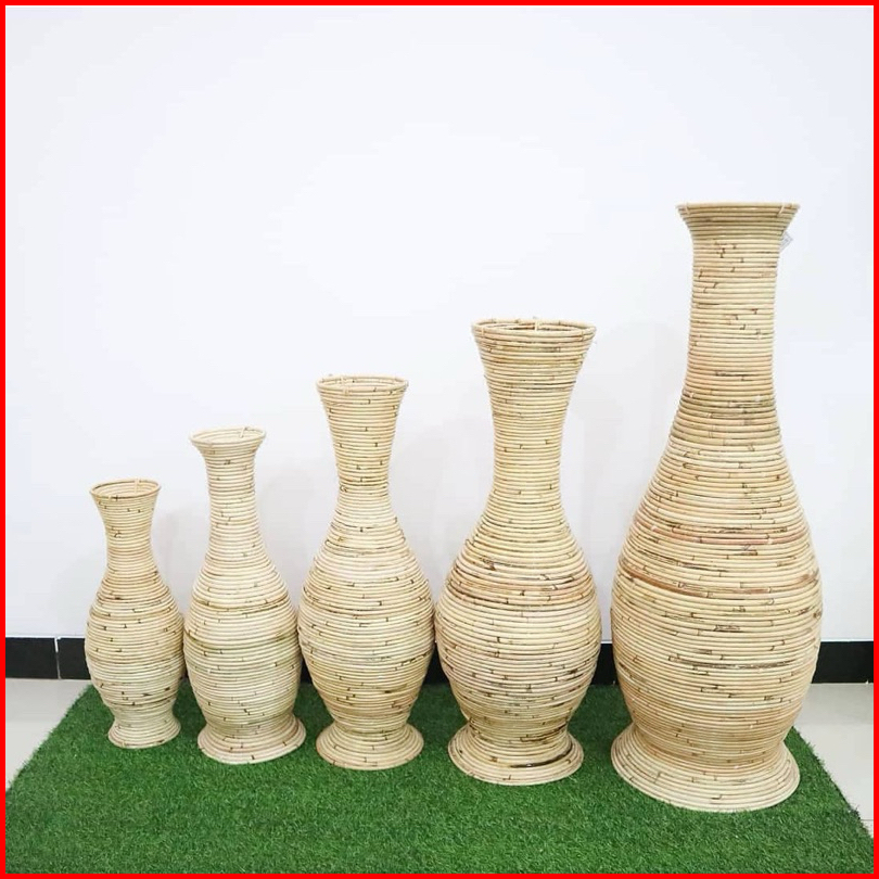 Vas Rotan Natural Finishing Mengkilap Guci Rattan Dekorasi Studio Foto Pot Rottan Aesthetic Hiasan Sudut Ruangan Estetik
