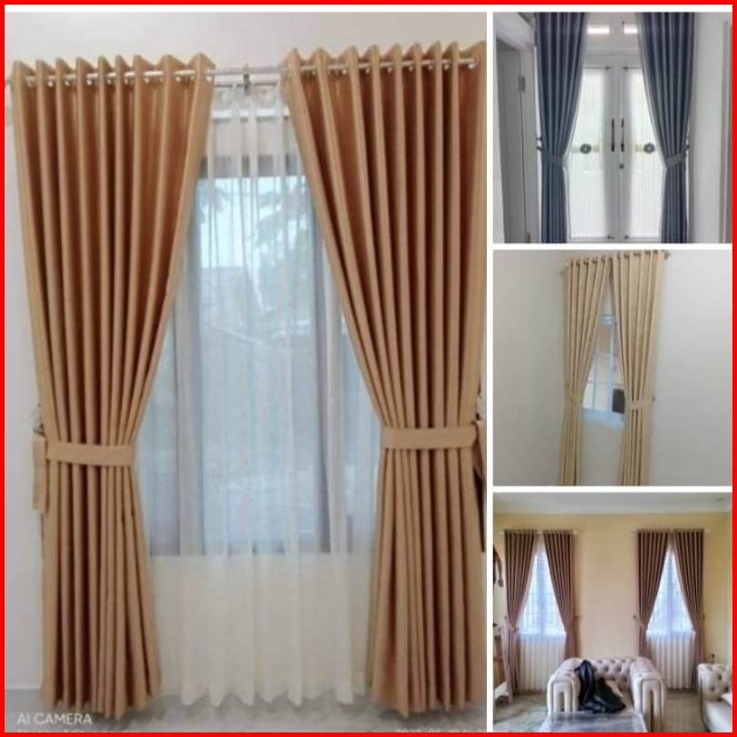 Gorden Blackout Polos Tebal Tidak Tembus Pandang 12 Lubang 6 Gelombang Blazer