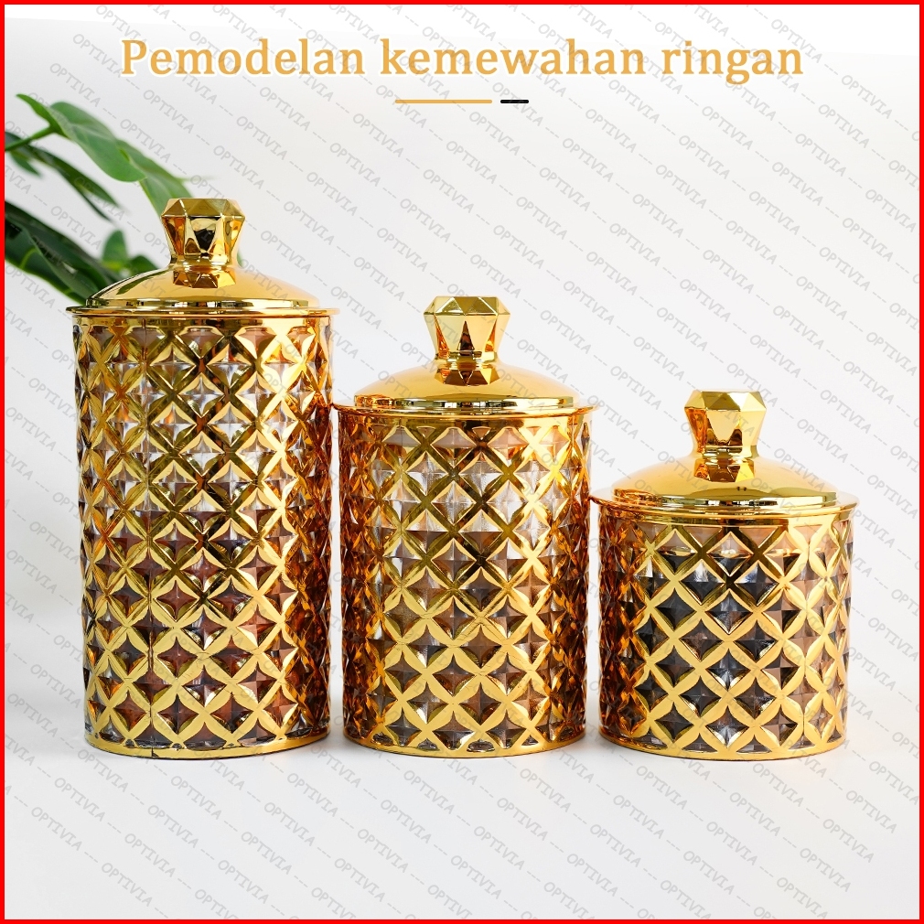 Optivia Berlian Toples Plastik Tertutup Tempat Penyimpanan Snack Mewah Toples Makanan Serbaguna Toples Plastik Bersegel