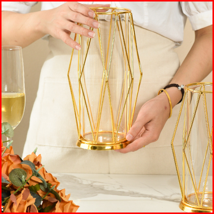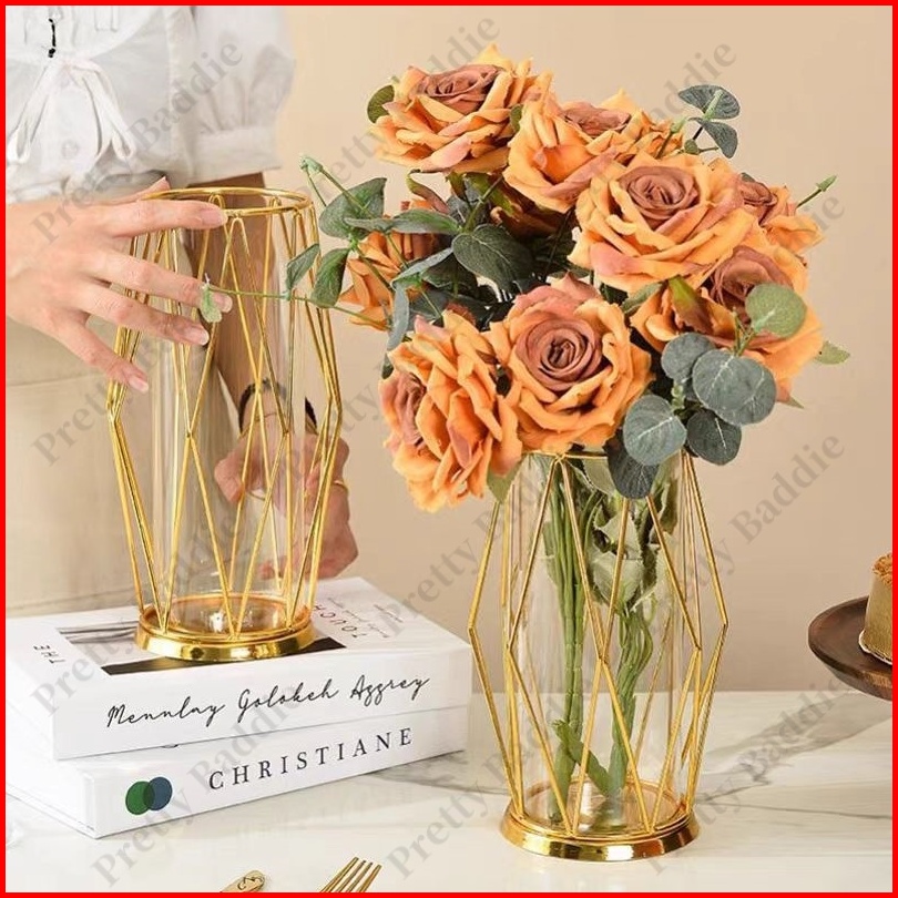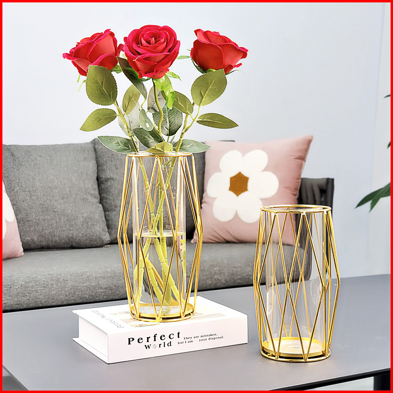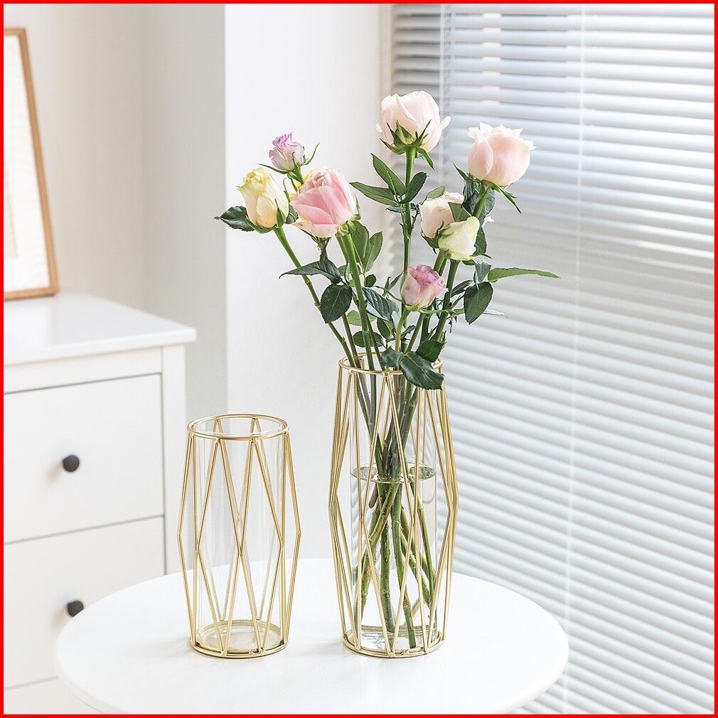 Dekorasi Meja Ringan Vas Kaca Minimalis Vas Tabung Reaksi Kaca Hidroponik Dengan Rangka Besi Yang Elegan