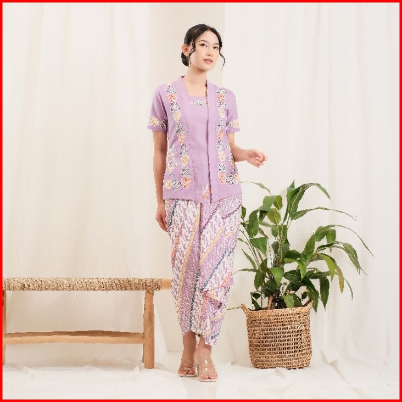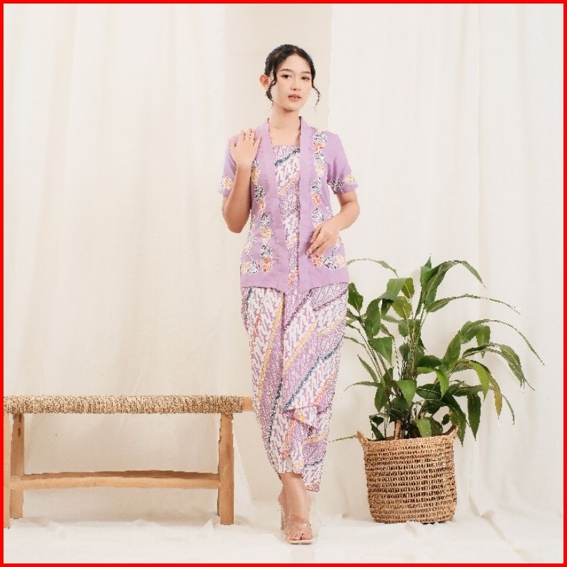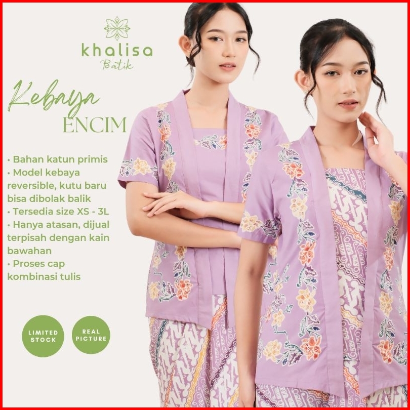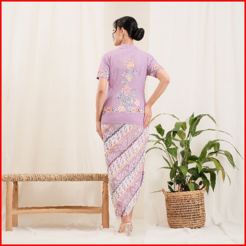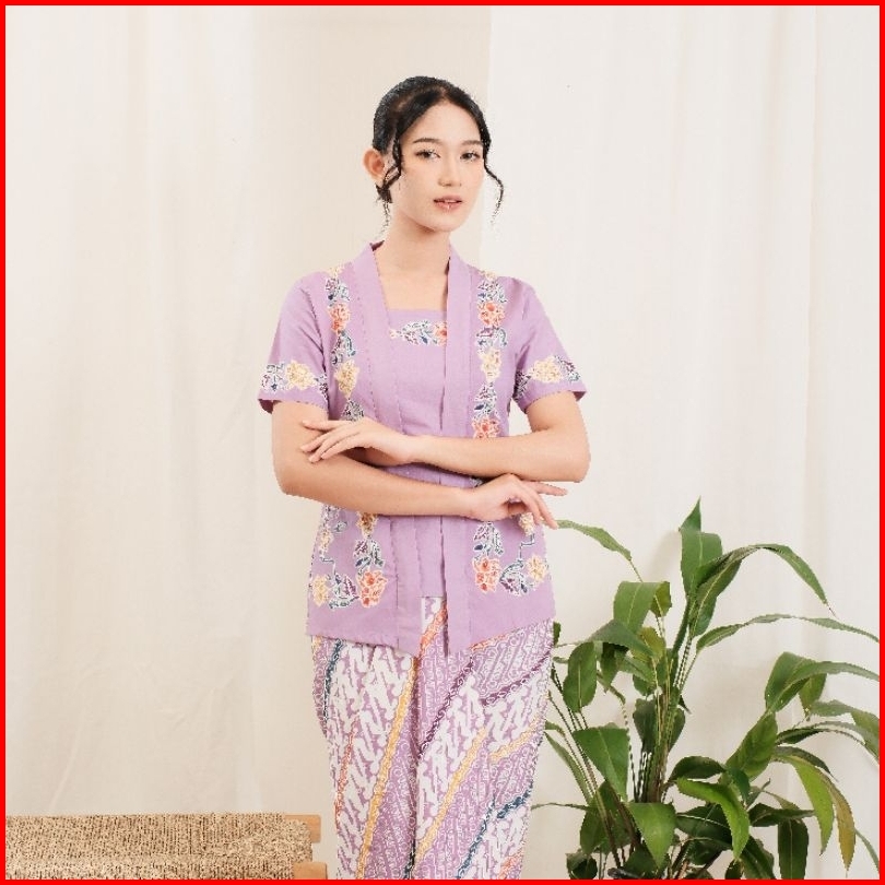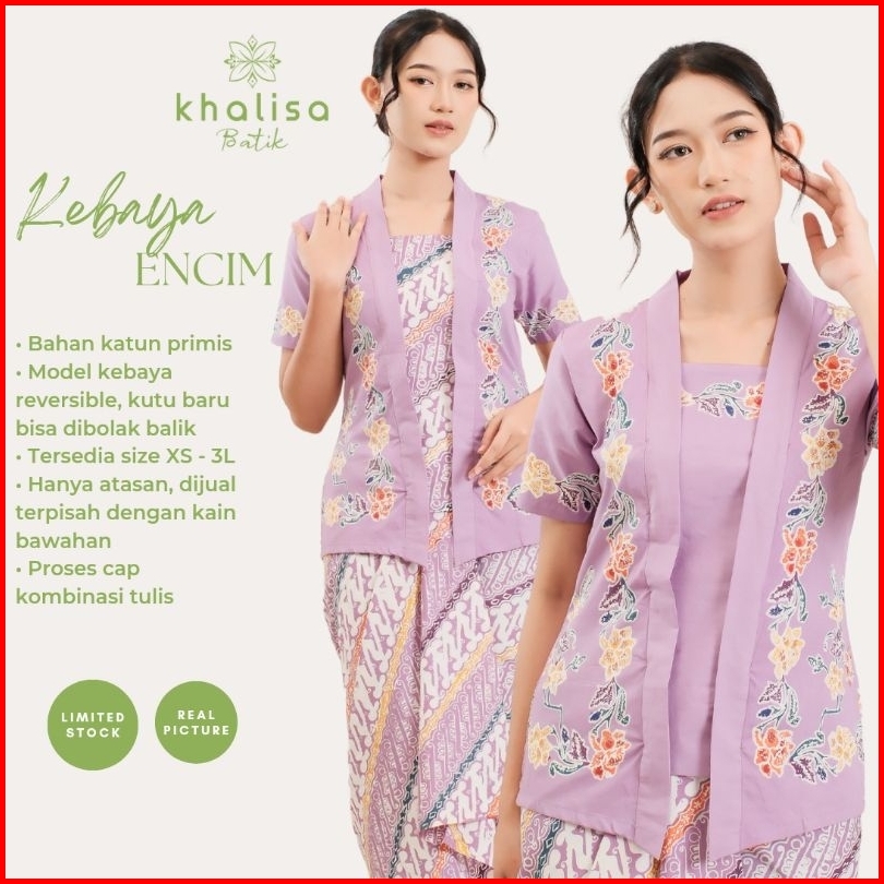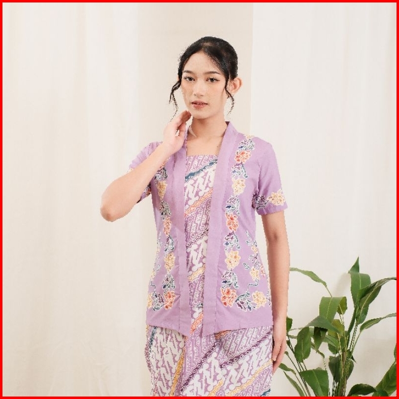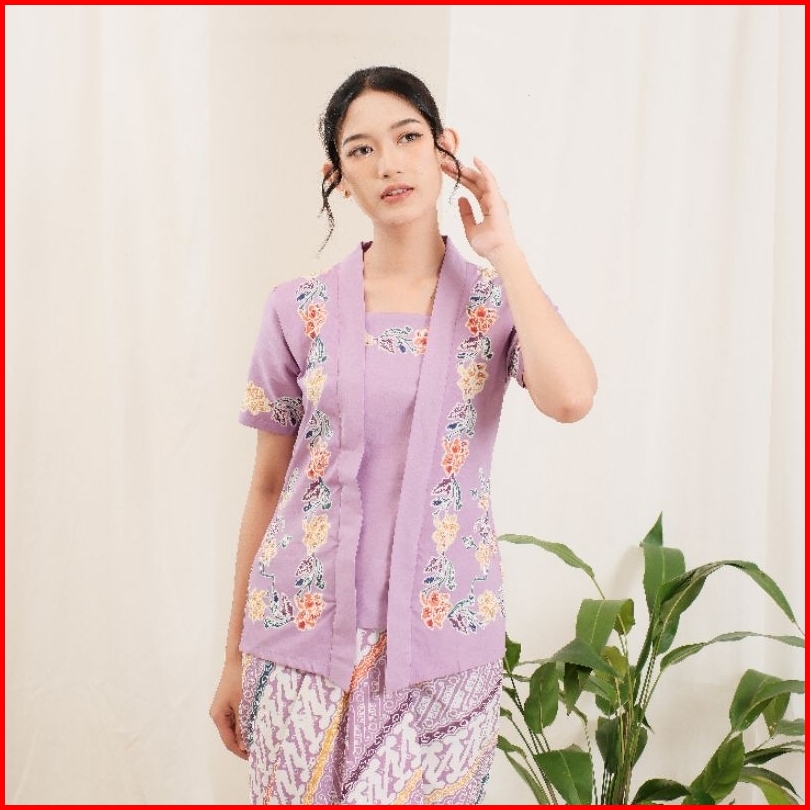 Kebaya Encim Batik Lengan Pendek Bahan Katun - Ungu By Khalisa Batik